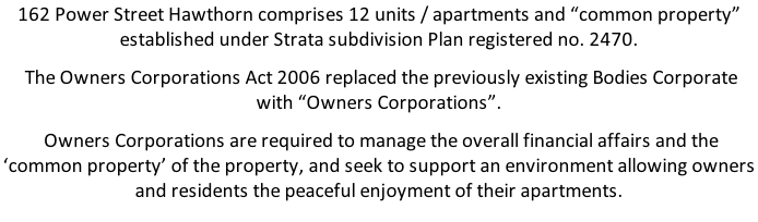 Owners Corporation 162 Power St., Hawthorn, Vic 3122 |